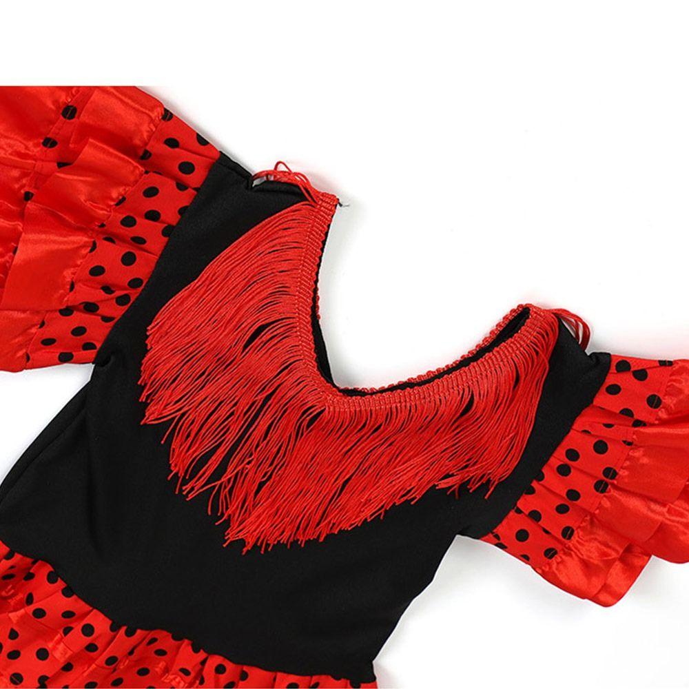 Короткий рукав Испанское танцевальное платье Дизайн в горошек Цыганское платье Модный фестивальный наряд с кисточками Косплей
