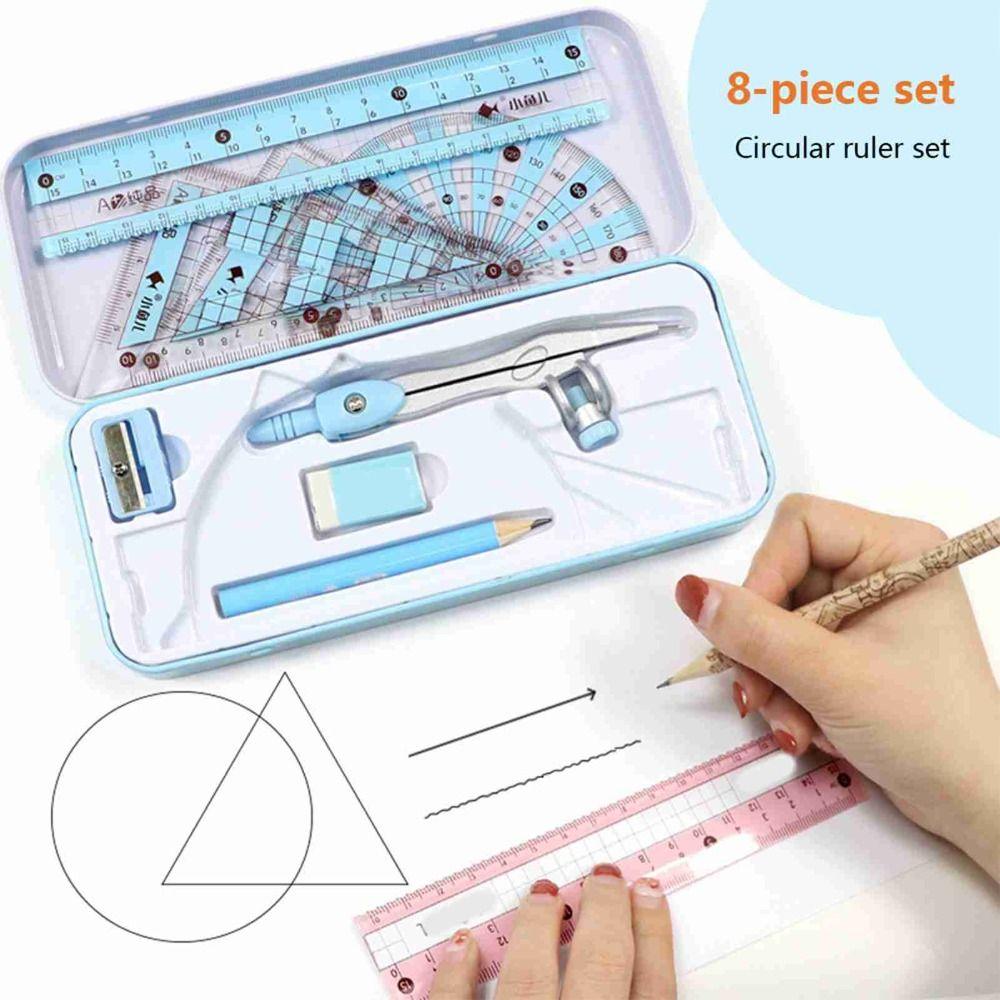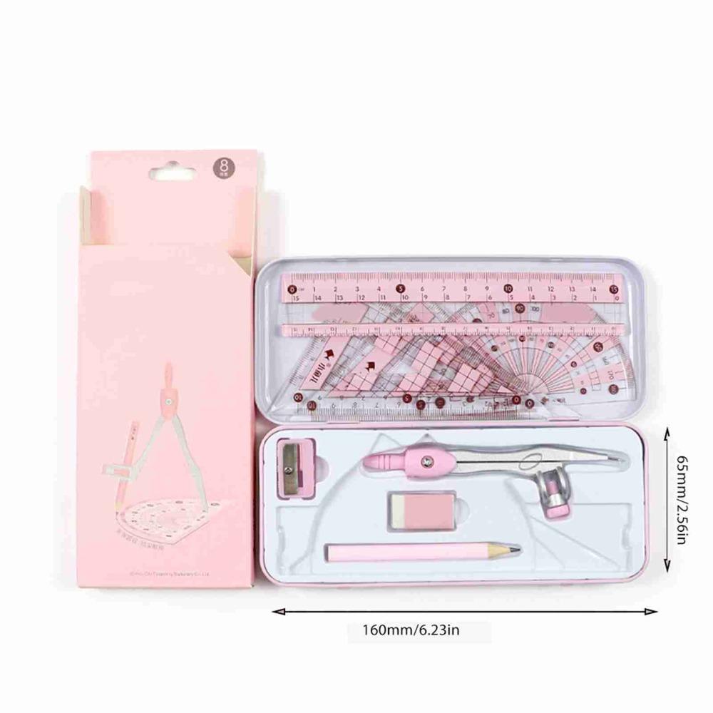 Blue/Pink Compass Ruler Set 160 * 65mm Tool Set Durable Geometry Drawing Kit Math Learning