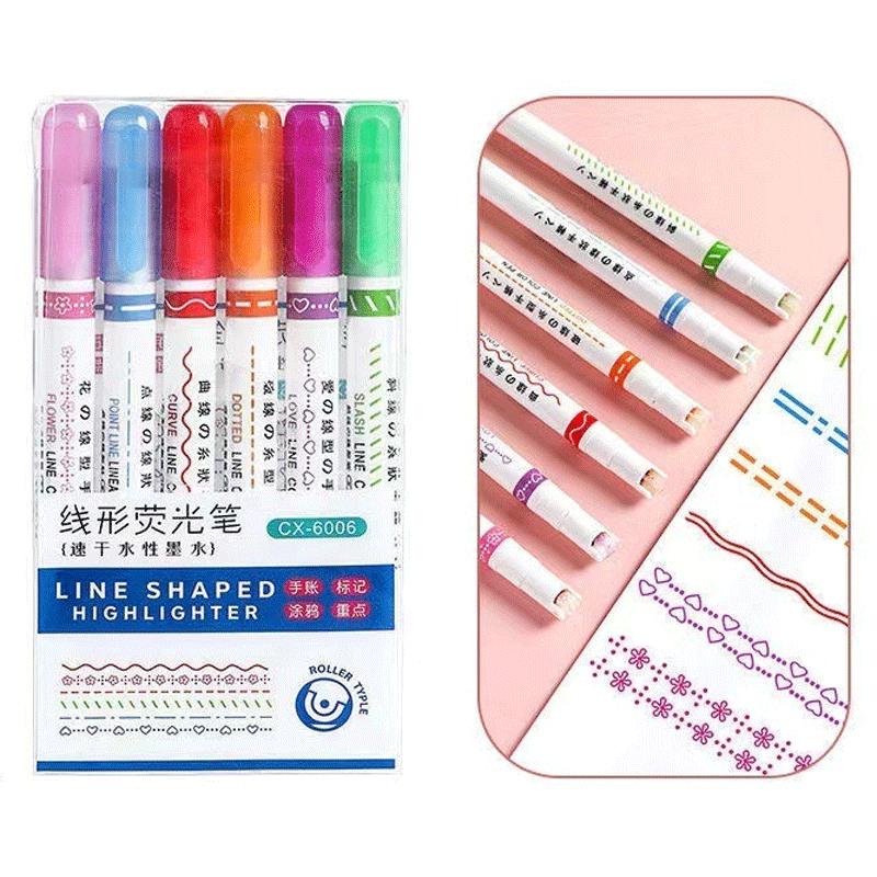 6 цветов, забавный маркер с двойной линией, контурная ручка, ручная копия, разноцветная кривая ручка, быстросохнущий маркер для рисования