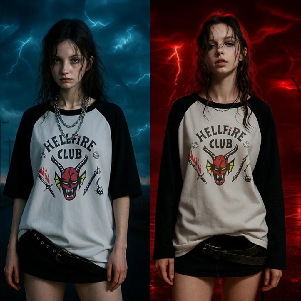 Футболка с принтом Stranger Hellfire для взрослых, женская, мужская, унисекс, с длинными рукавами.