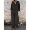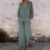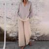Женский комплект из топа с V-образным вырезом свободного кроя и брюк широкого кроя светло-голубого цвета, повседневный наряд из хлопка и льна — купить товар онлайн с бесплатной доставкой по всему миру!