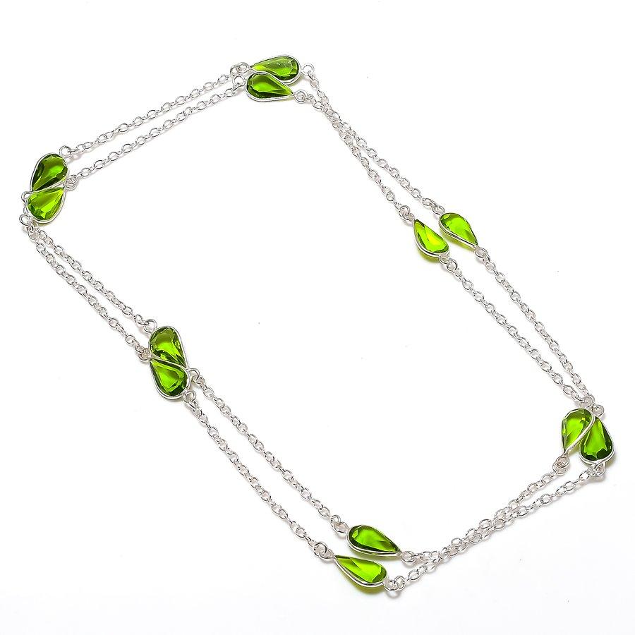 Натуральный камень Перидот Ручная работа 925 пробы Стерлинговое серебро Ювелирное изделие Ожерелье 18" ASN-6001