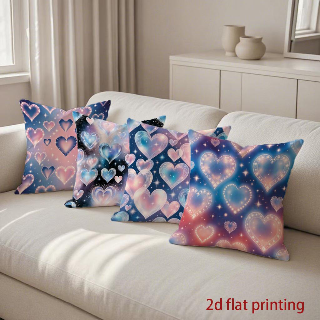 2D Galaxy Hearts Patterned Decorative Pillow Covers Pattern Cushion Cover Suitable For Sofa Bedroom Car Pillow Cover