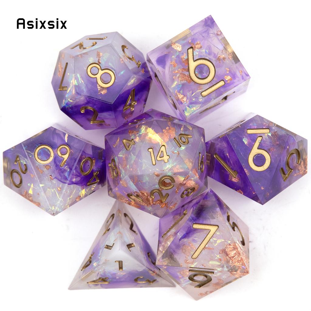7 шт. Фиолетово-белые смоляные кубики с золотыми числами, острыми гранями, многогранные кубики, подходят для ролевых игр RPG, настольных игр