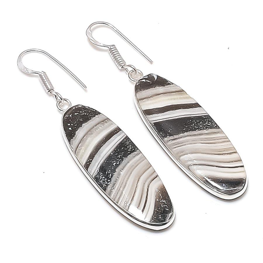 Натуральный Кальцит Агат Драгоценный Камень 925 Пробы Серебро Ювелирное Изделие Серьга 2.25" AEE-10907