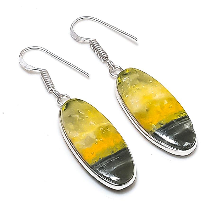 Натуральный Яшма Шмель 925 Пробы Серебро Ювелирное Изделие Серьга 1.85" AEE-10811