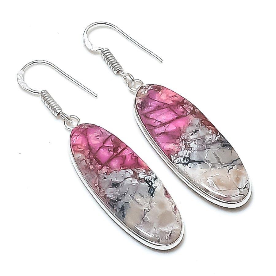 Натуральный Кобальтовый Камень Ручной Работы Серьга из Стерлингового Серебра 925 Пробы 2.17" AEE-10766