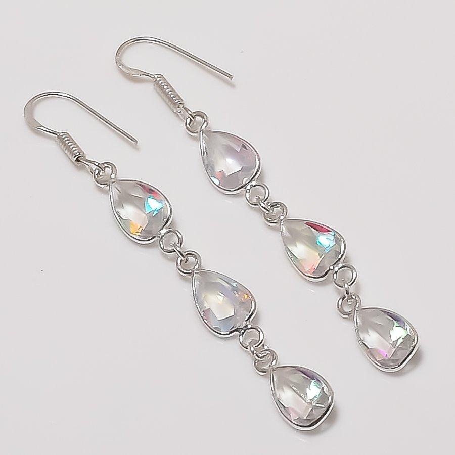 Натуральный Белый Топаз Драгоценный Камень 925 Пробы Стерлингового Серебра Ювелирное Изделие Серьга 2.68" AEE-11279