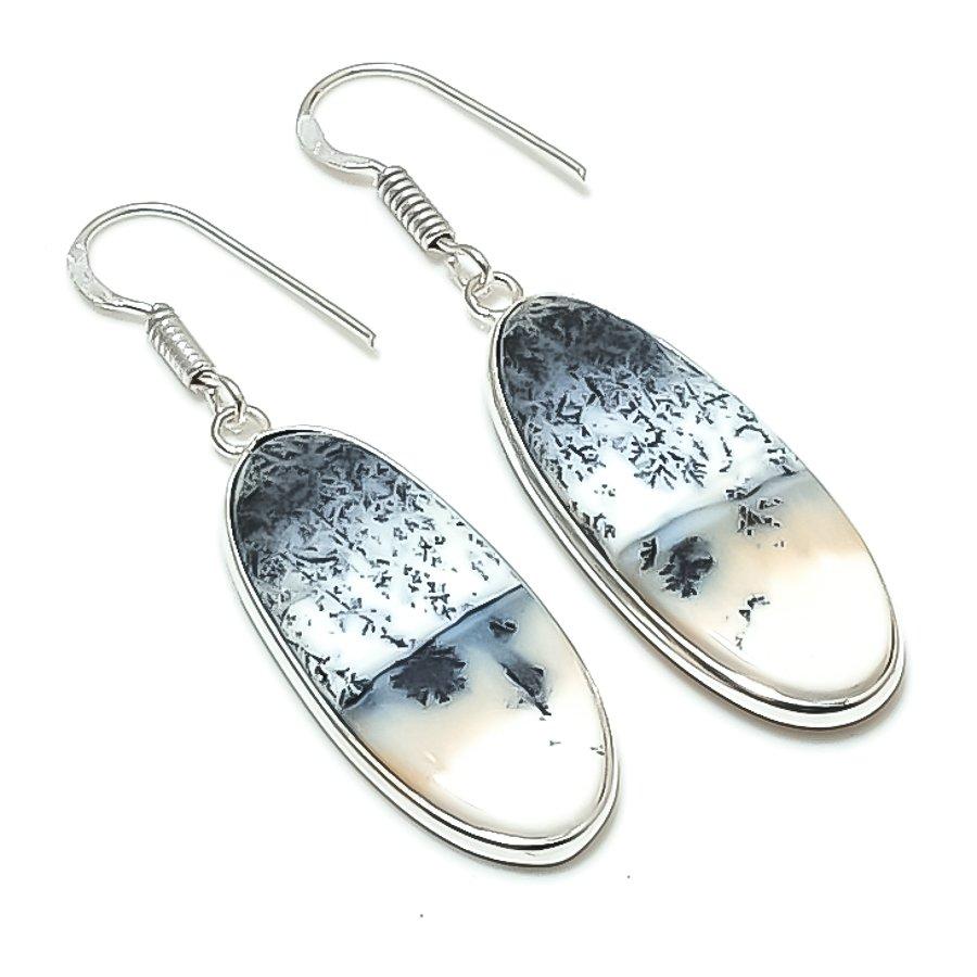 Натуральный опал дендритный драгоценный камень Серьги из стерлингового серебра 925 пробы 1,97" AEE-11080