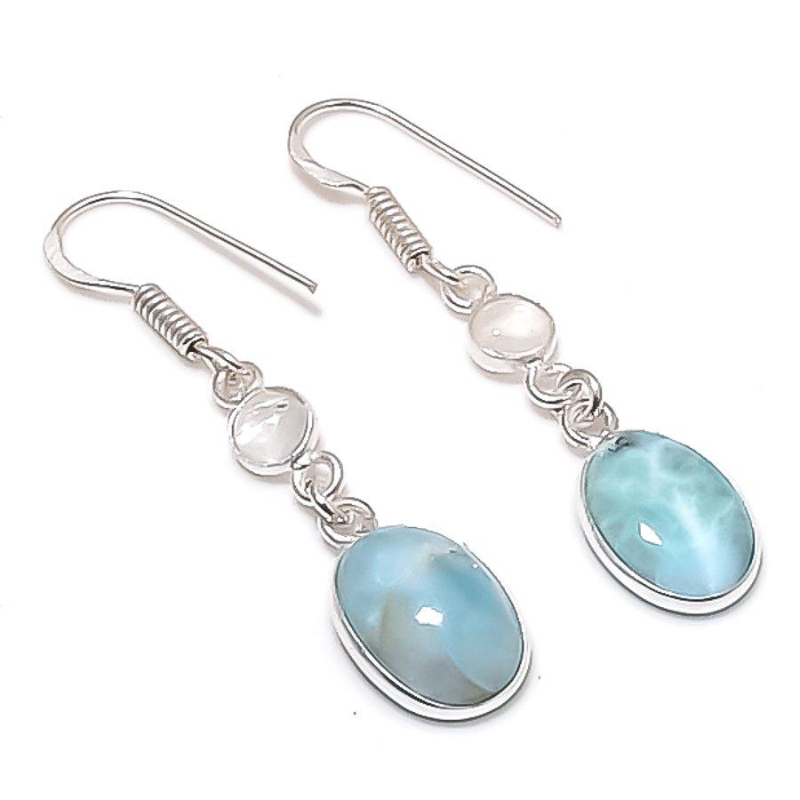 Натуральный Ларимар, Белый Топаз 925 Пробы Серебро Ювелирное Изделие Серьга 1,77" AEE-11250