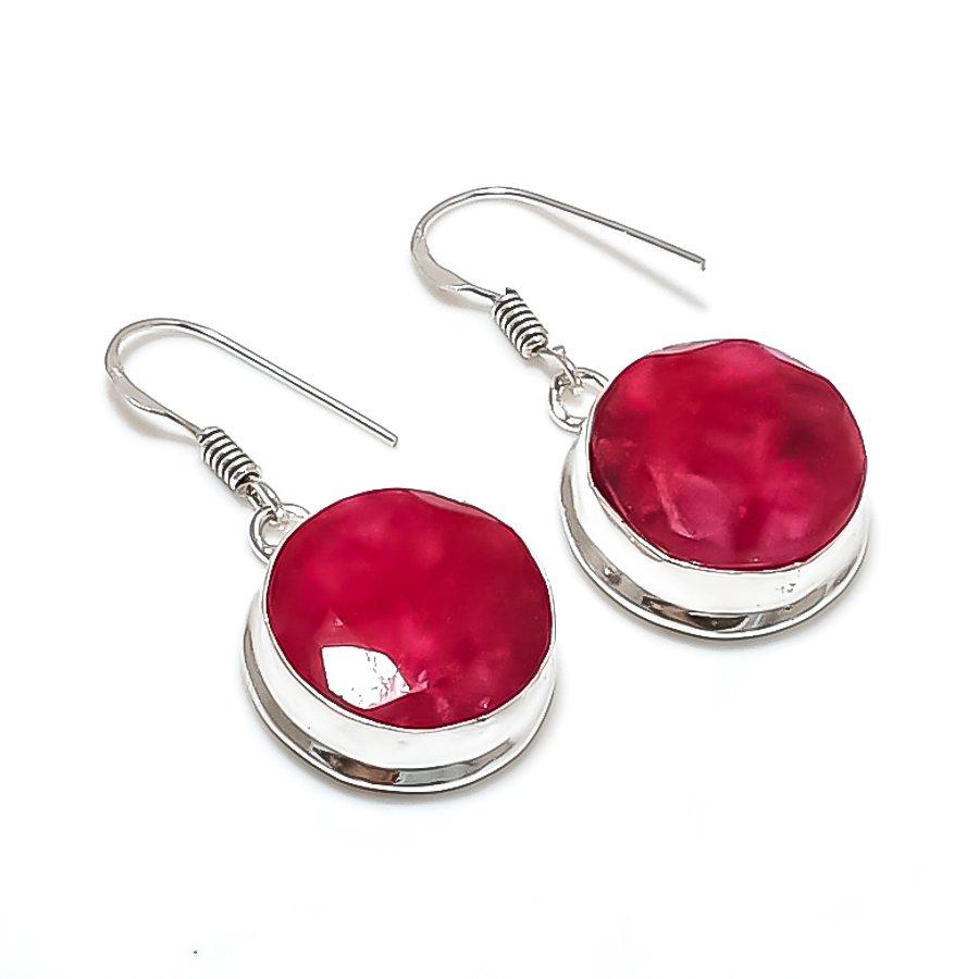 Кашмирский красный рубин(Смоделированный) Драгоценный камень 925 пробы Стерлинговое Серебро Украшение Серьга 1.50" ETC-13823