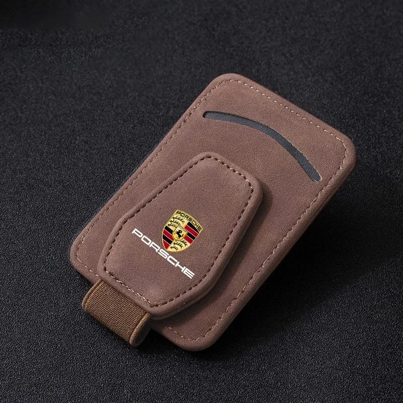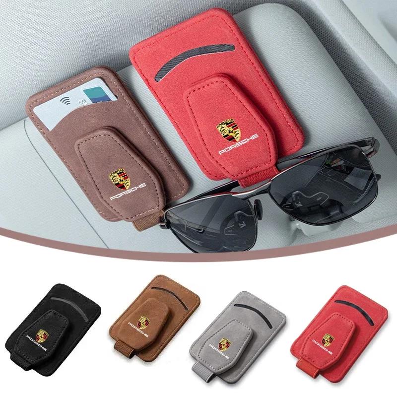 Автомобильный солнцезащитный козырек, коробка для очков, зажим для солнцезащитных очков, держатель для карт и билетов для Porsche Cayenne Panamera Macan 911 718 Taycan Boxster Cayman