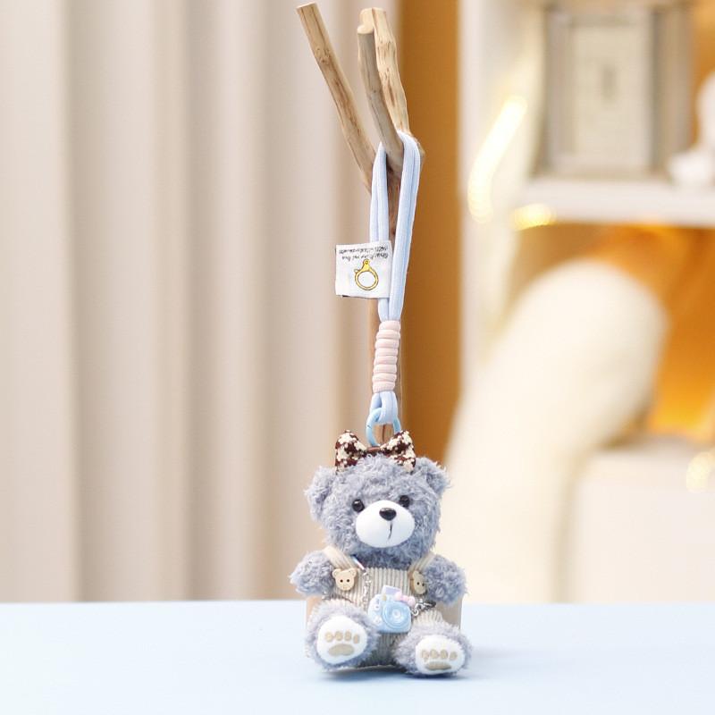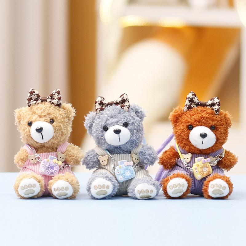 Cute Checkered Bow Strap Pants Sweater Camera Teddy Bear Plush Doll For Girls Gift And Bag Decoration