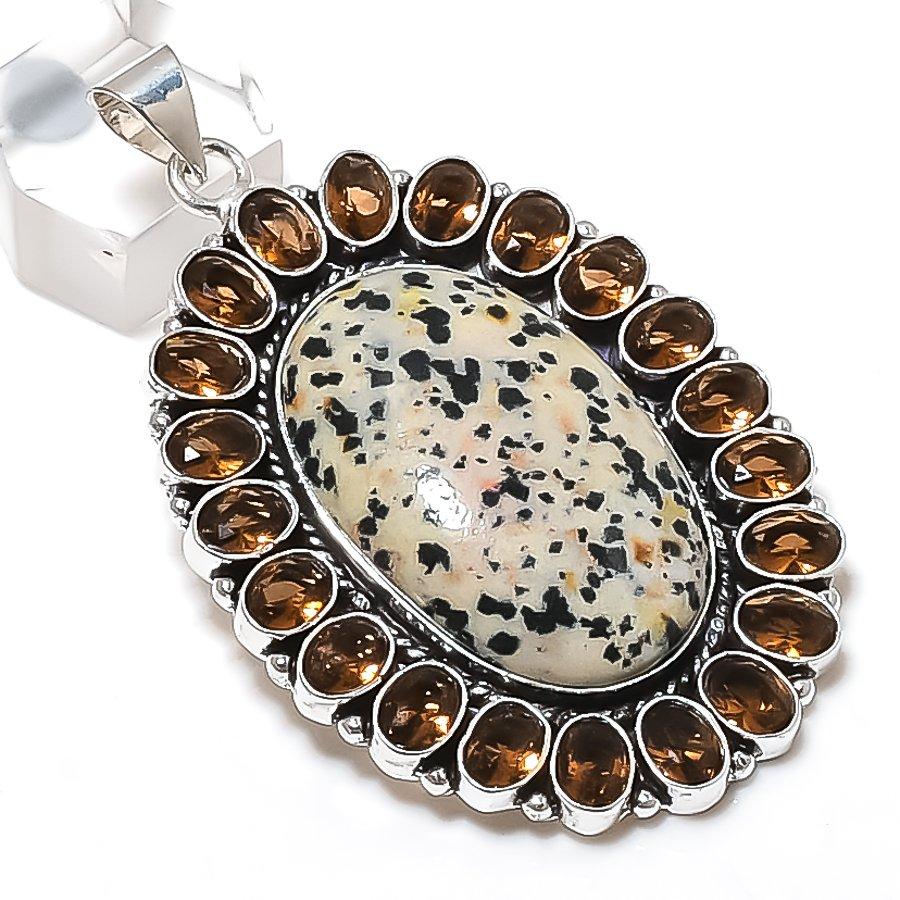 Натуральный далматинский яшма, Топаз 925 пробы Серебро Ювелирный кулон 2,76" ETC-13781