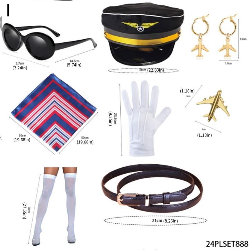 Flight Captain Outfits Captain Hat Uniform Epaulettes Neck Tie Halloween Stewardess Costume Flight Attendant Cosplay Set