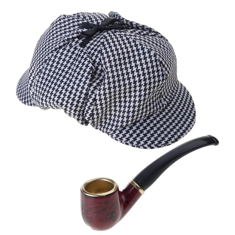2 шт. Мужской костюм детектива Комплект костюма Трубка Черно-белая шляпа Аксессуары для костюма детектива для вечеринок на Хэллоуин — купить товар онлайн с бесплатной доставкой по всему миру!