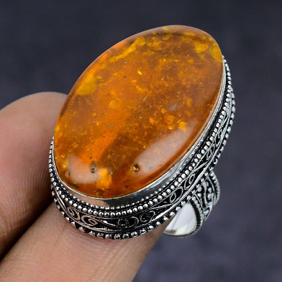 Натуральный балтийский янтарь Драгоценный камень 925 пробы Стерлинговое серебро Ювелирное изделие Размер кольца 8.5 ETC-6738