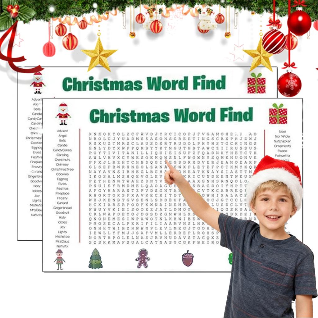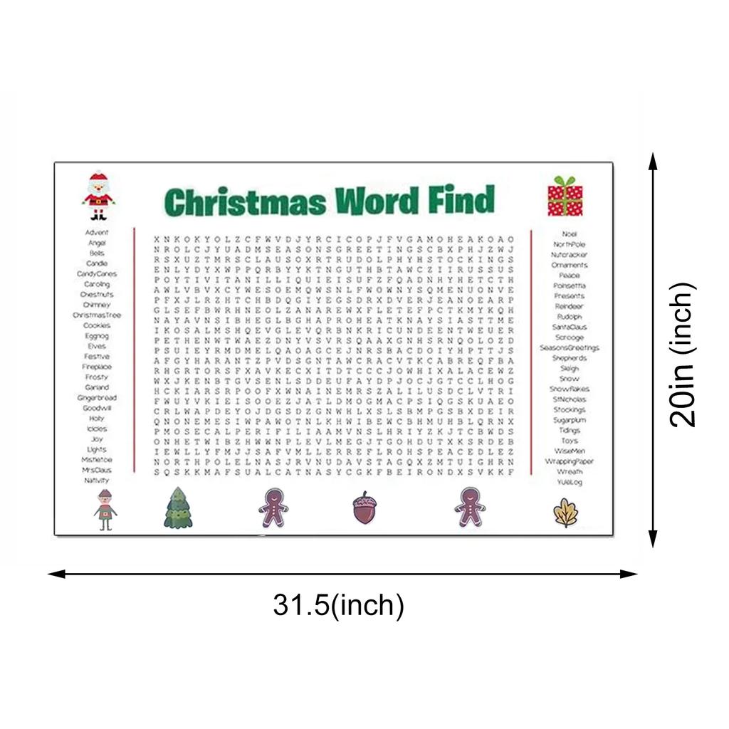 Thanksgiving Christmas Word Search Poster 31.5x20in Wall Game Giant Christmas Activity Poster for Families Christmas Game