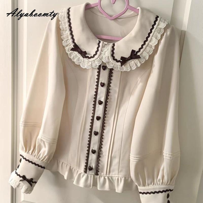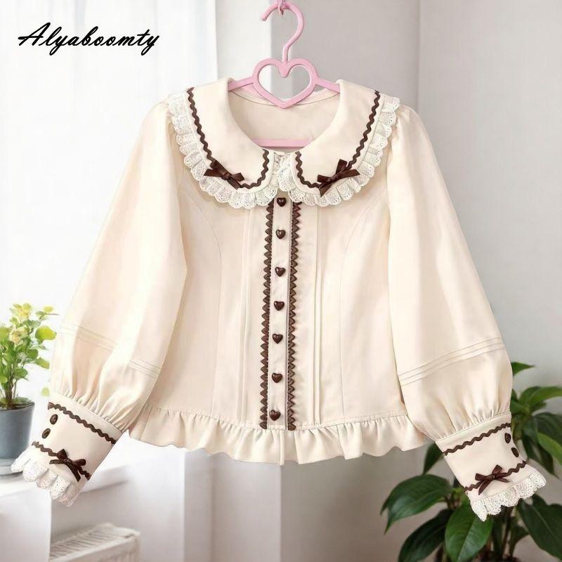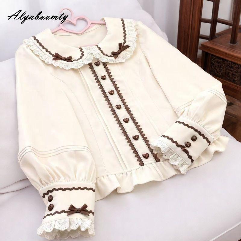 2026 Новое поступление Японский стиль Лолита Весна Лето Женская блузка Воротник Питер Пэн Бант Коричневая рубашка Длинный рукав Сладкая Милая Девичья Каваии JK Топ