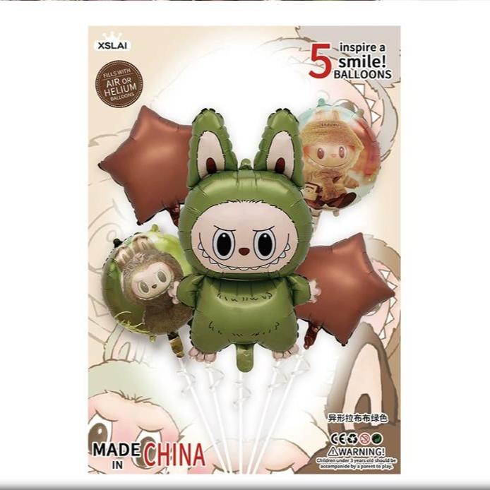 5 шт. Милый мультяшный воздушный шар из алюминиевой пленки Лабубу, украшение для детской вечеринки по случаю дня рождения, надувная игрушка для детского праздника