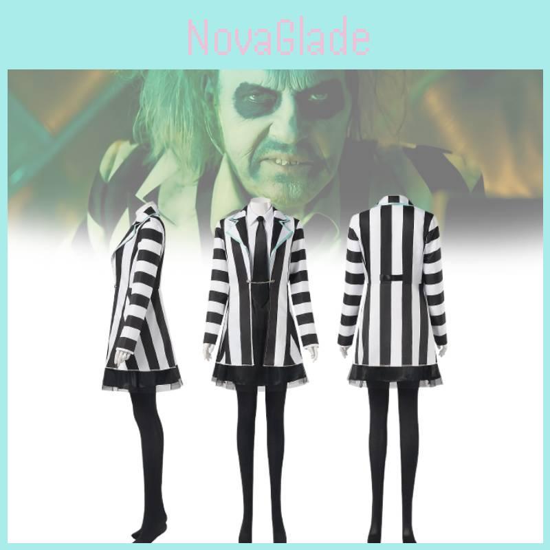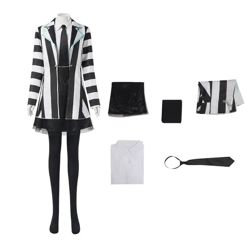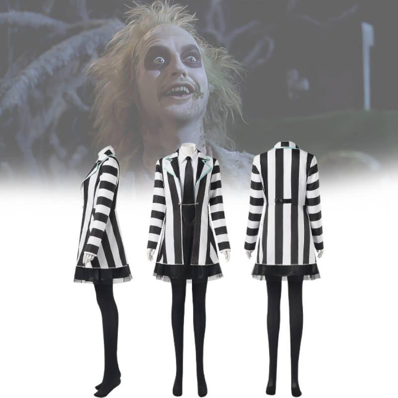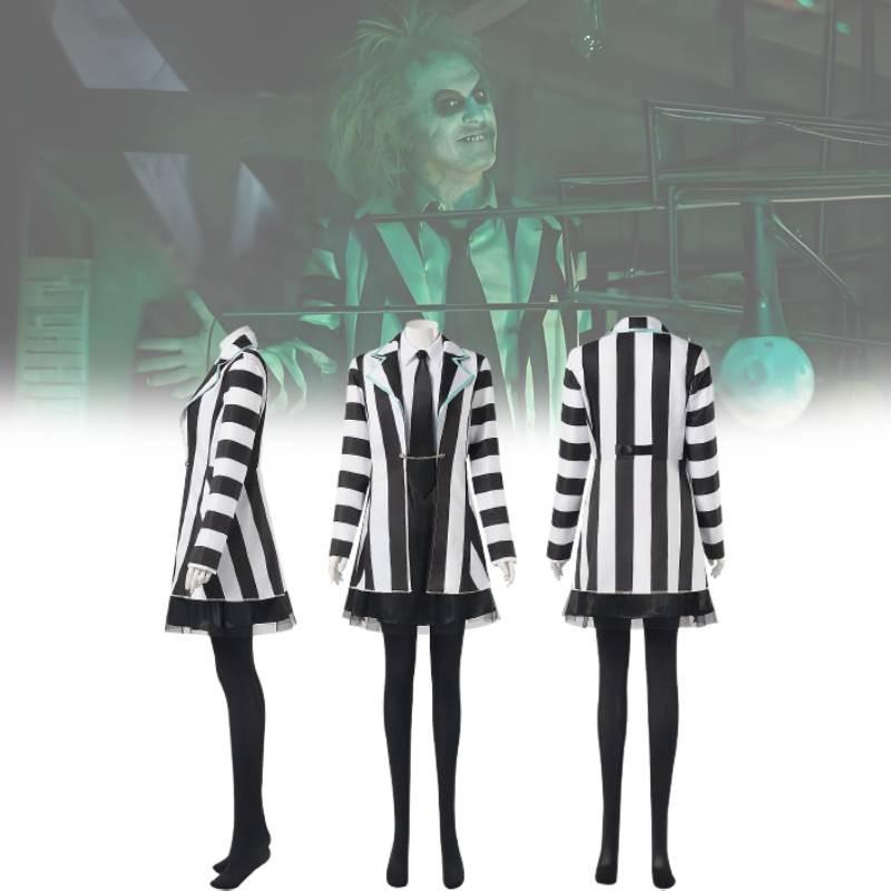 Косплей-костюм Битлджуса 2 для женщин, выполненный из эффектной черной смесовой ткани из полиэстера