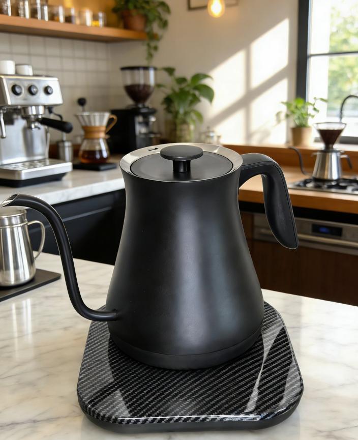Чайник с тонким носиком и изогнутой шеей нагревает полный объем воды до кипения всего за 4-6 минут при мощности 1000 Вт. Это отличное дополнение к вашему утреннему ритуалу с кофе. Он на 50% эффективнее традиционных плит в снижении ежедневного потребления электроэнергии. Идеально подходит для наслаждения кофе и чаем дома.