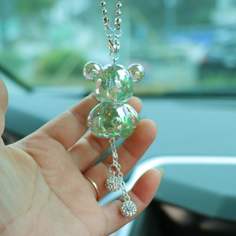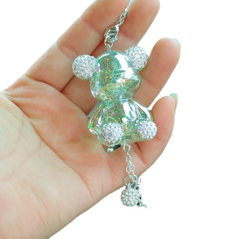 Милый мультяшный плюшевый мишка Подвеска на зеркало заднего вида автомобиля Фиолетовая глина Автомобильный кулон С пластиковыми стразами