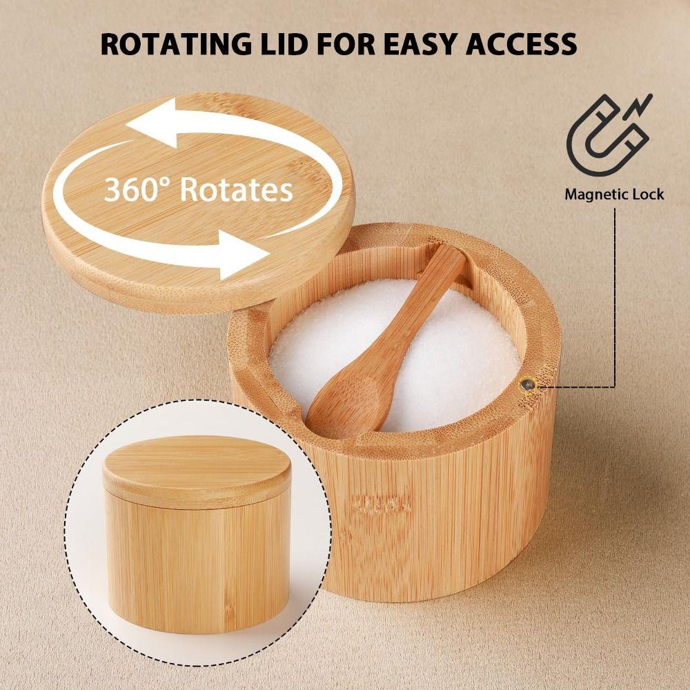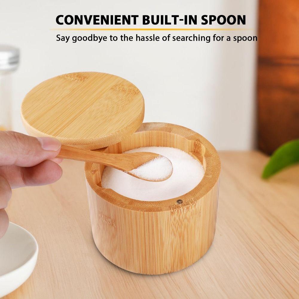 Bamboo Salt Cellar Bowl Large Capacity Salt Container Kitchen Holder Store Pepper Seasoning