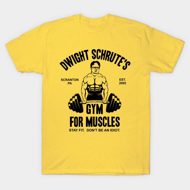 Men Black Print T-shirt Dwight Schrute'S Gym For Muscles No-Cut Transfer Paper Print Cotton Tshirt — купить товар онлайн с бесплатной доставкой по всему миру!