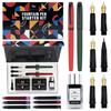 ★ Набор перьевых ручек Этот полный стартовый набор включает две перьевые ручки: один красный брашпен и одна черная перьевая ручка со средним пером, плюс четыре ручки с широким пером (1.0, 2.0, 2.5, 3.0). В комплекте 60 чернильных картриджей (30 сортов, 15 синих и 15 черных) и бутылочка черных чернил 18 мл. Идеально подходит для начинающих и опытных каллиграфов, этот набор перьевых ручек предоставляет все необходимое для создания потрясающих букв и узоров.