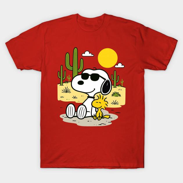 Men Black Print T-shirt Peanuts - Summer - Snoopy &Amp; Woodstock Desert No-Cut Transfer Paper Print Cotton Tshirt