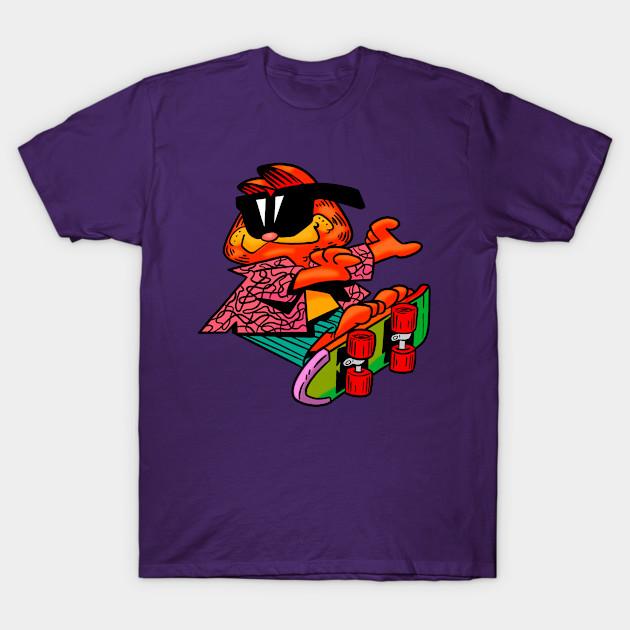 Men Black Print T-shirt Garfield No-Cut Transfer Paper Print Cotton Tshirt