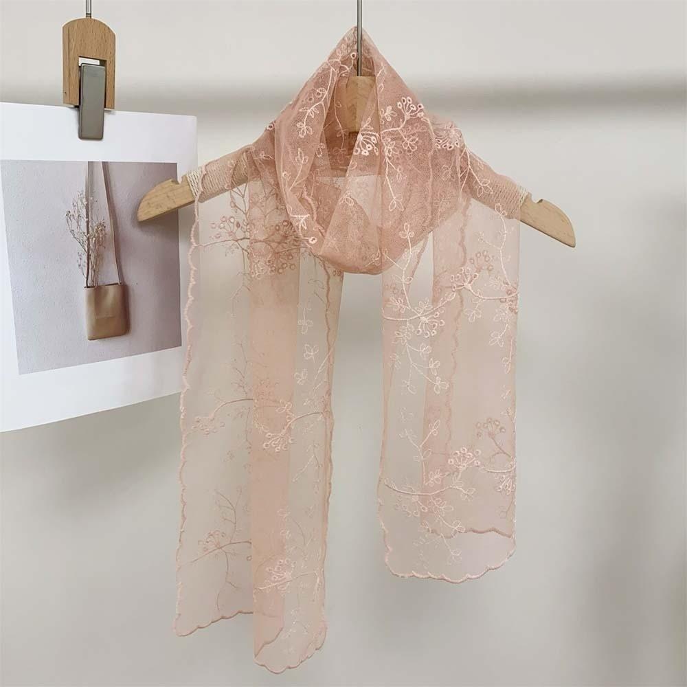 Polyester Embroidered Flower Shawl Silk Long Hijab Scarf Sweet Spring Silk Scarf Girls