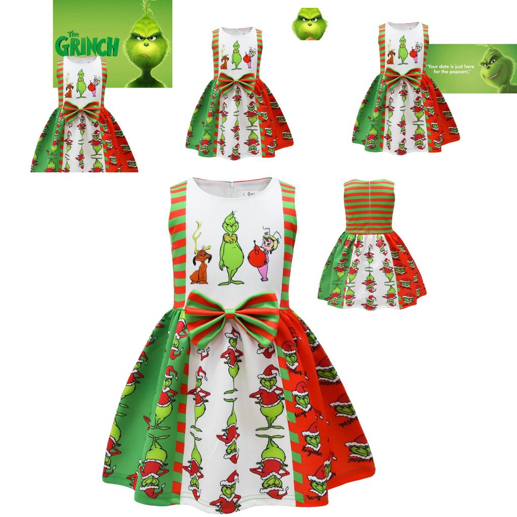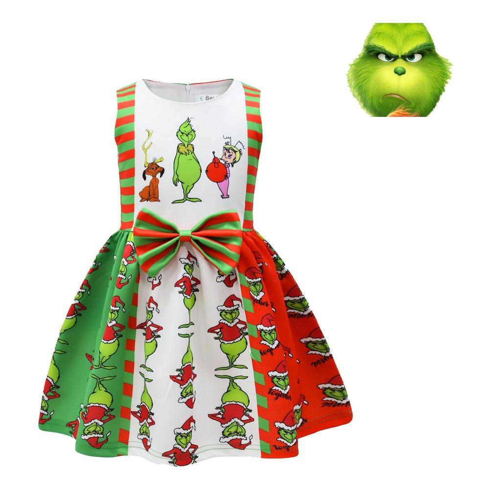 Платье без рукавов на Хэллоуин Гринч для детей Мягкий и удобный полиэстеровый материал