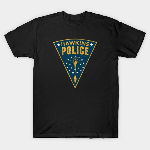 Men Black Print T-shirt Hawkins Police Dept. Patch No-Cut Transfer Paper Print Cotton Tshirt — купить товар онлайн с бесплатной доставкой по всему миру!