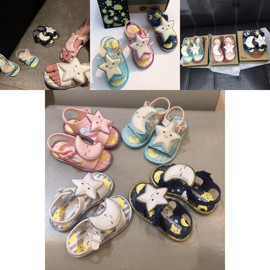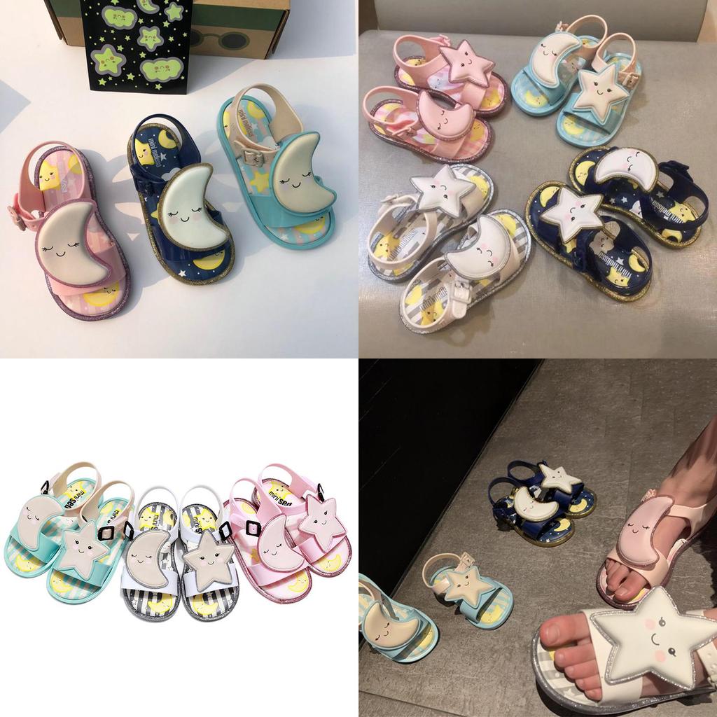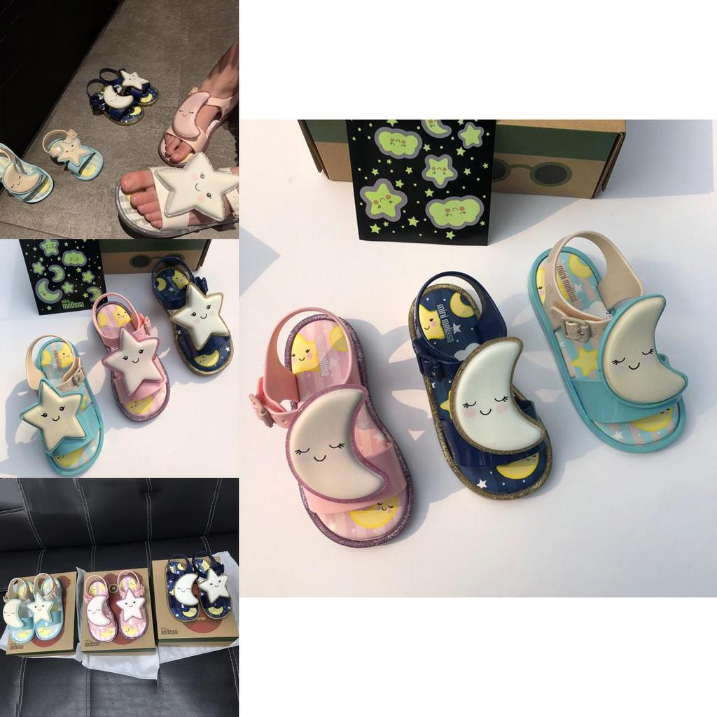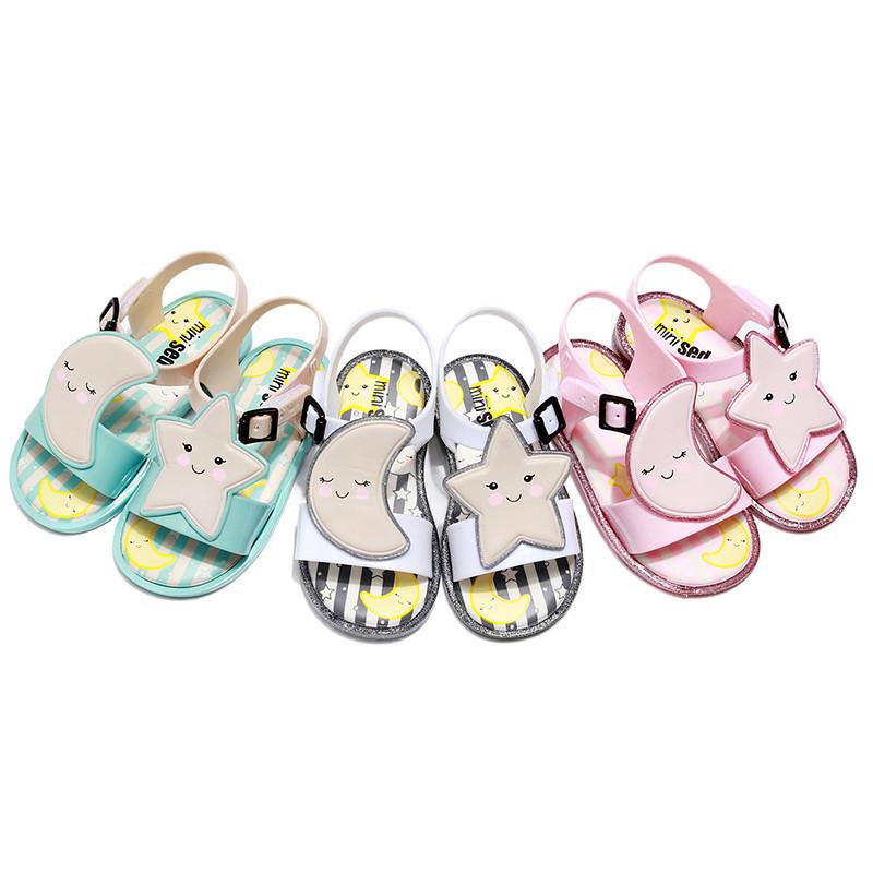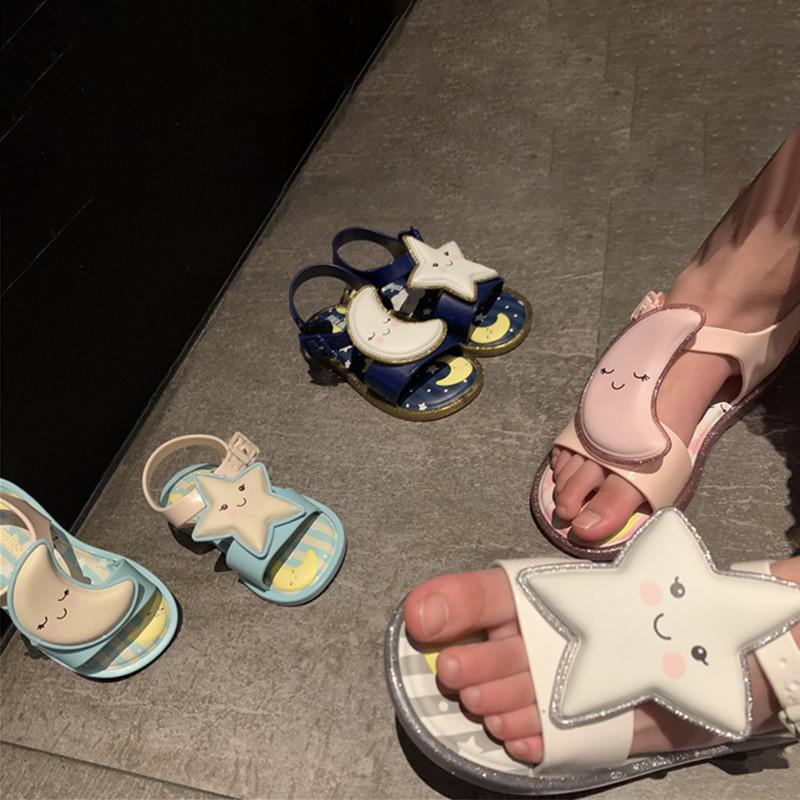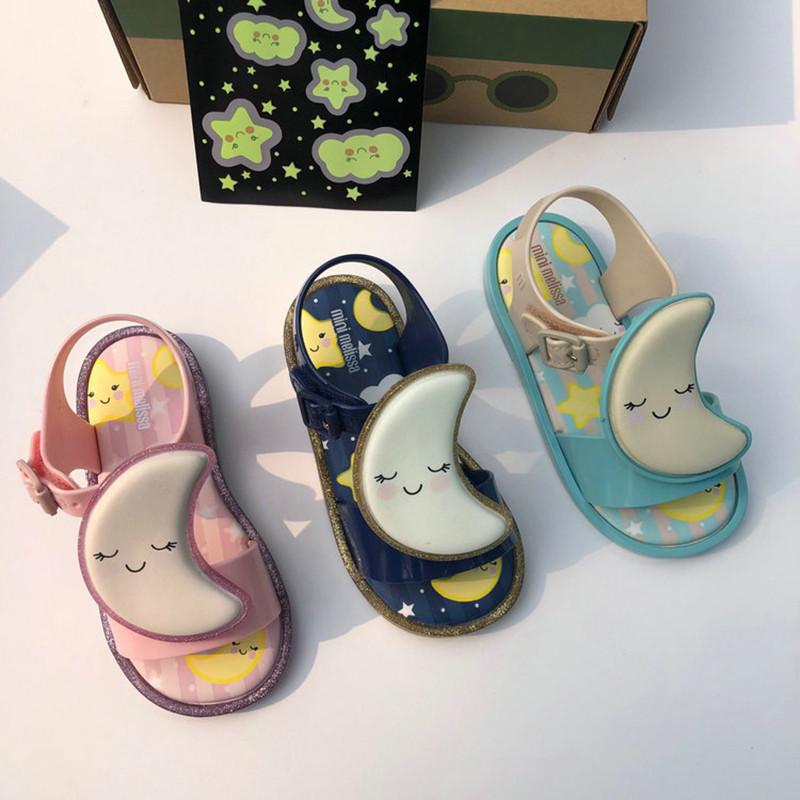Мини Мелисса Сандалии для девочек, украшенные светящимися луной и звездой, летний дизайн из желе