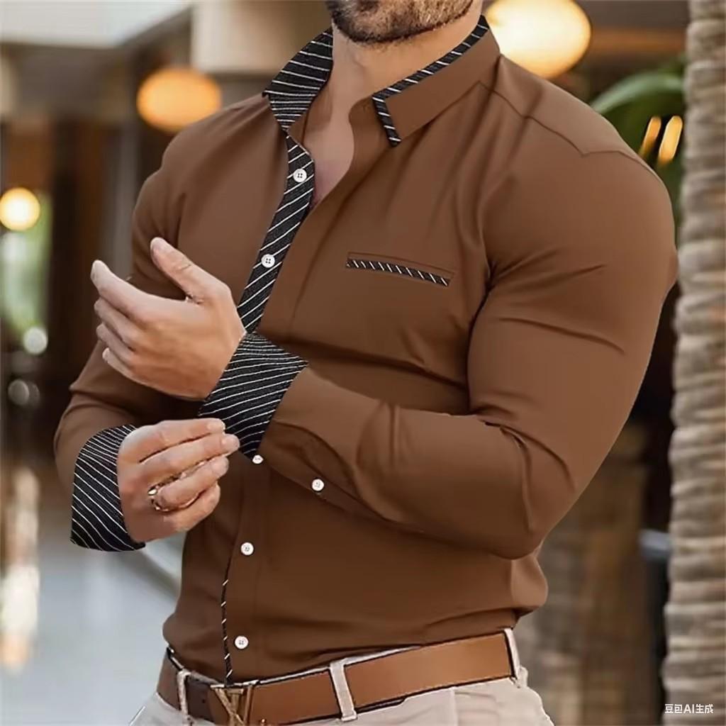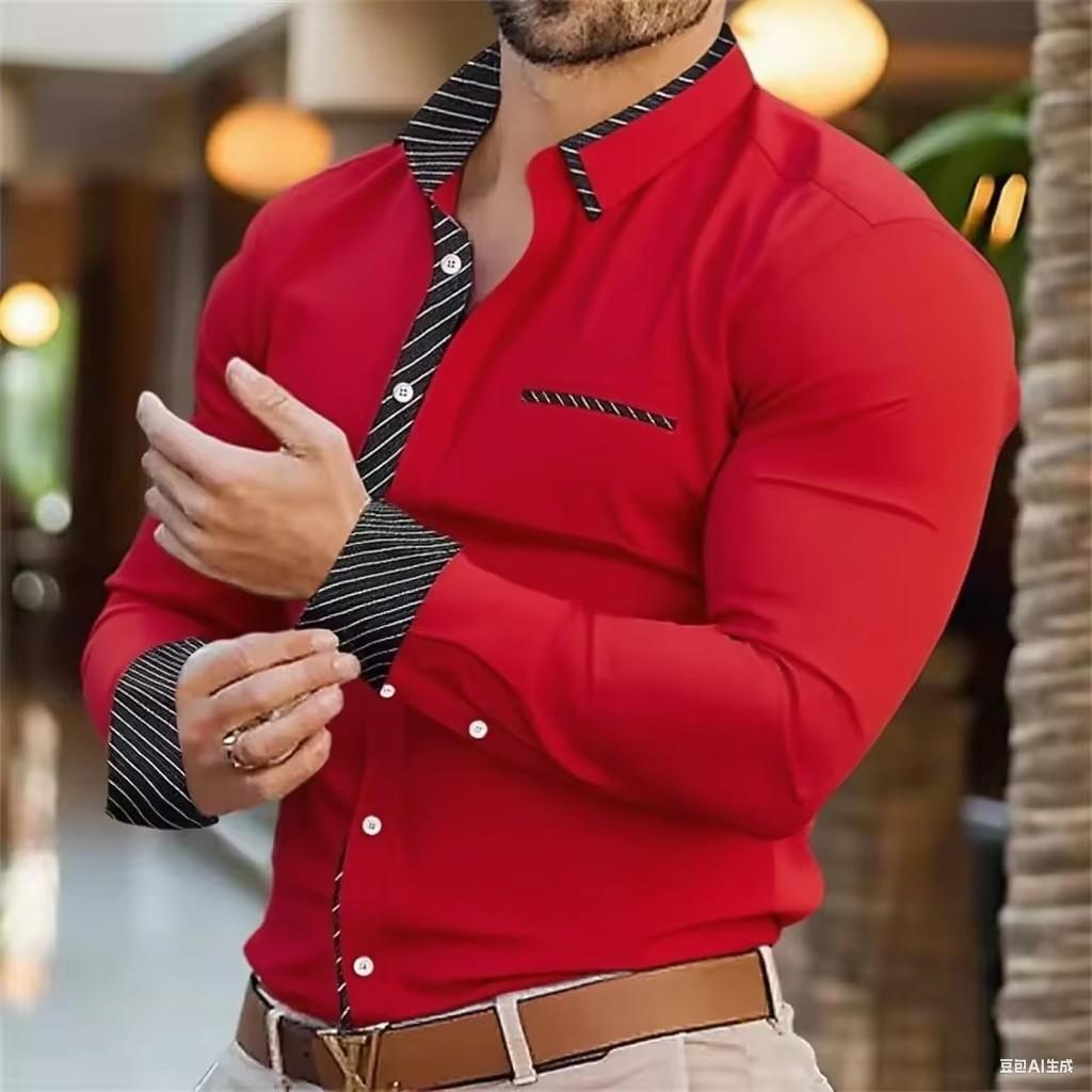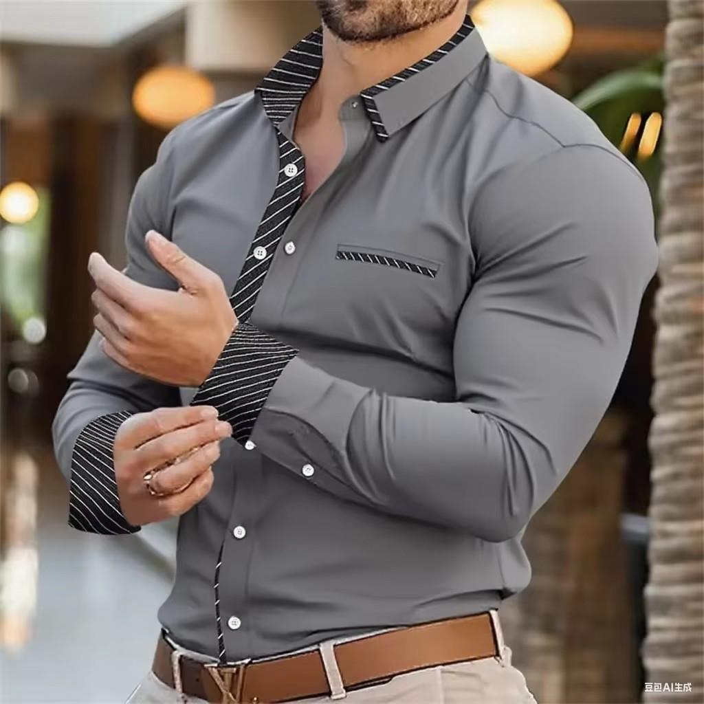 Мужская повседневная рубашка с длинным рукавом и 3D цифровой печатью, повседневные топы с карманом и декоративной строчкой