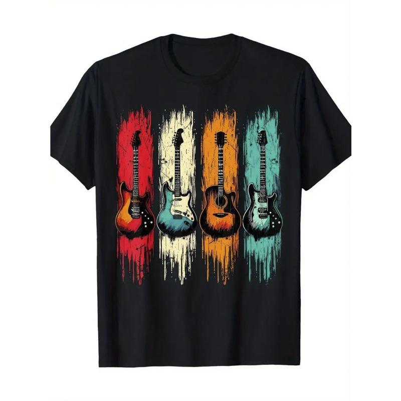 Европейские размеры Гитара Музыка Гитарист Бохо Обычная посадка Подарки для семьи Мужская футболка Винтажные Топы с круглым вырезом