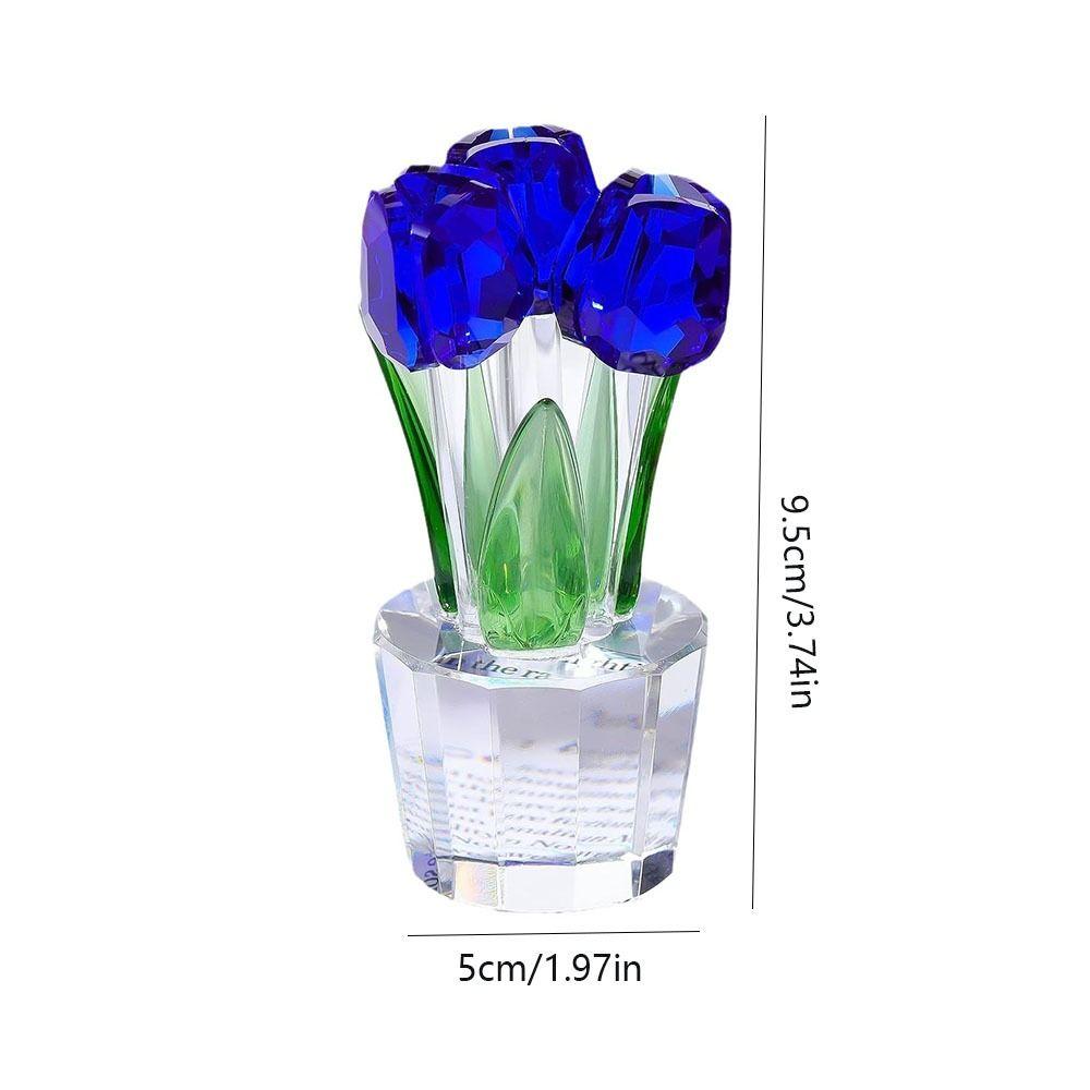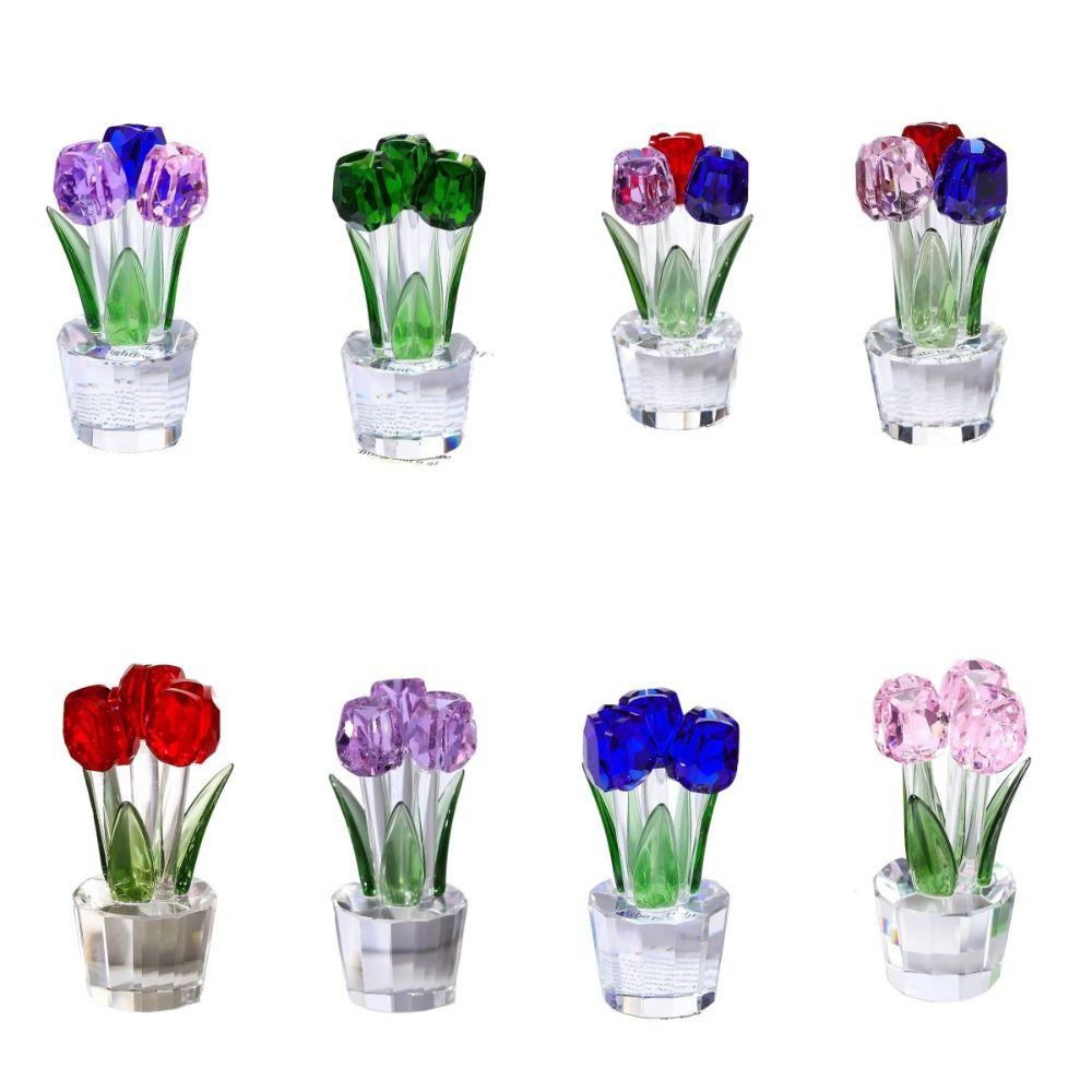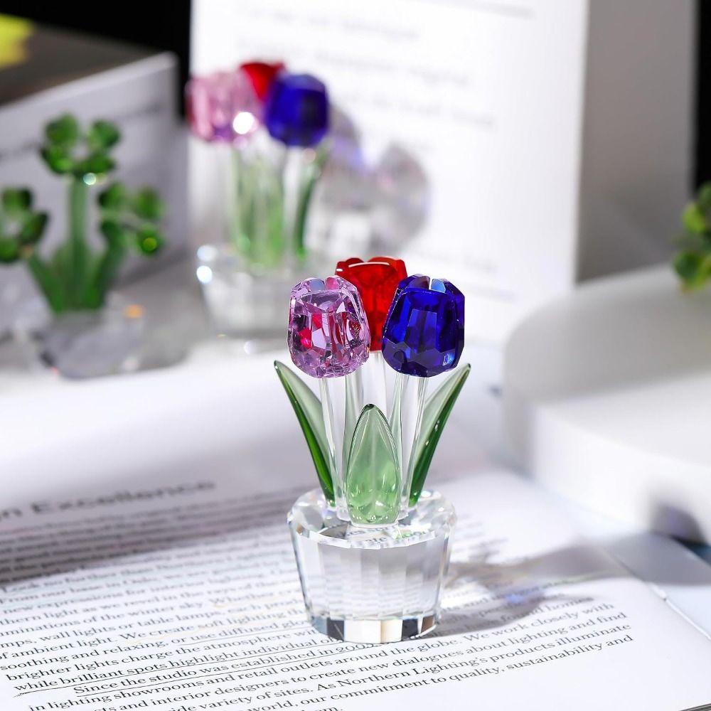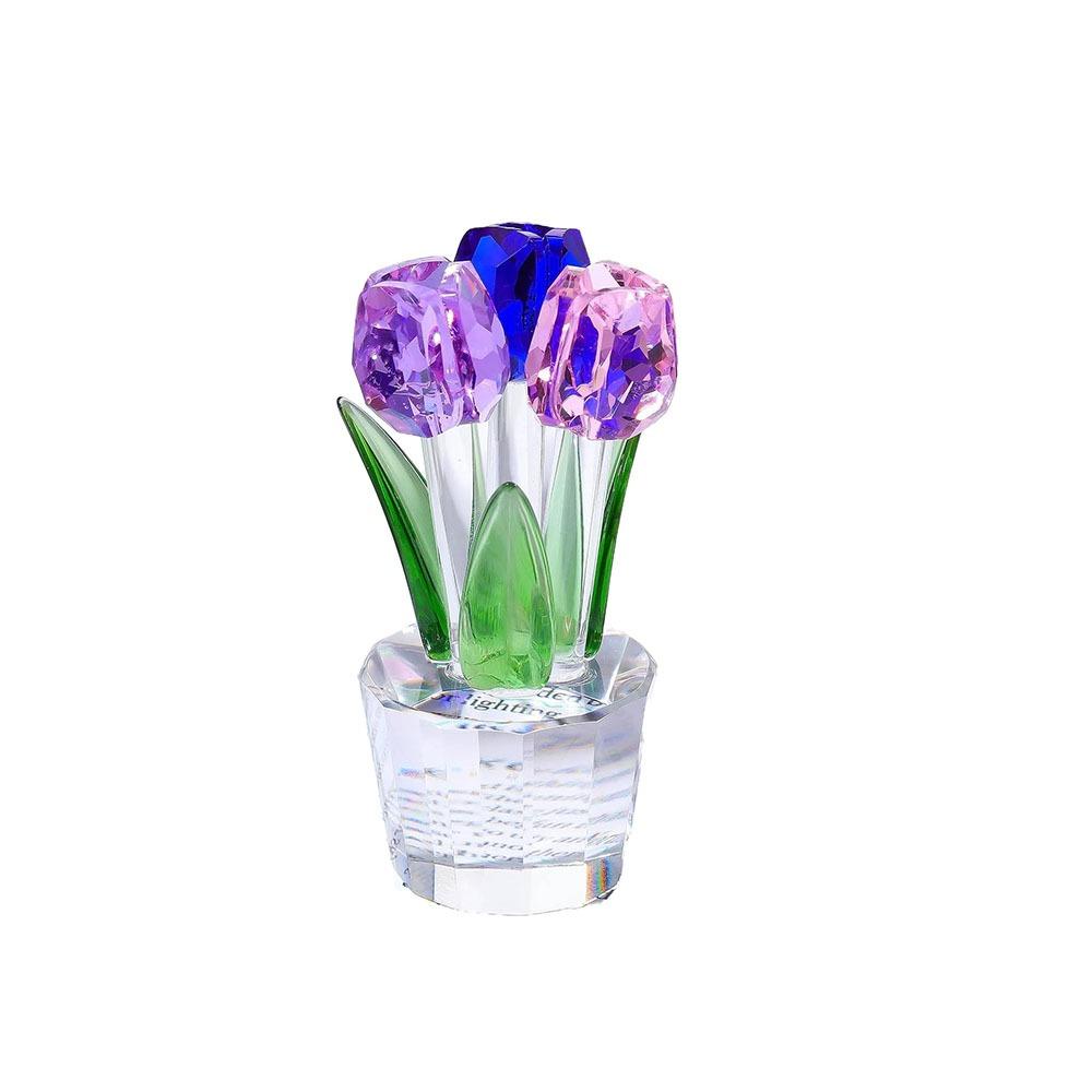Handmade Crystal Tulip Sculpture Colorful Tulip Bouquet Statue Home Table Decor