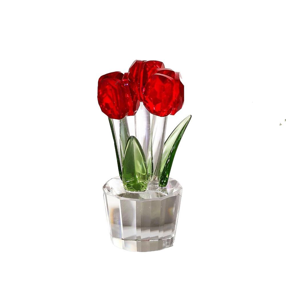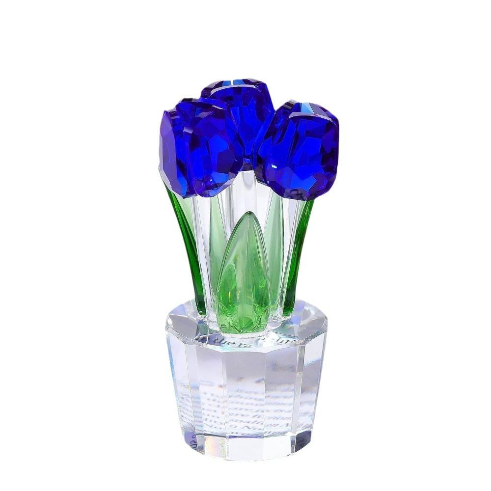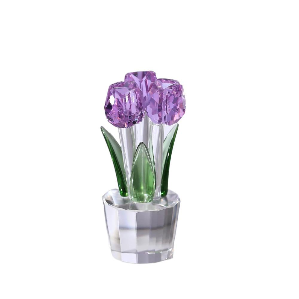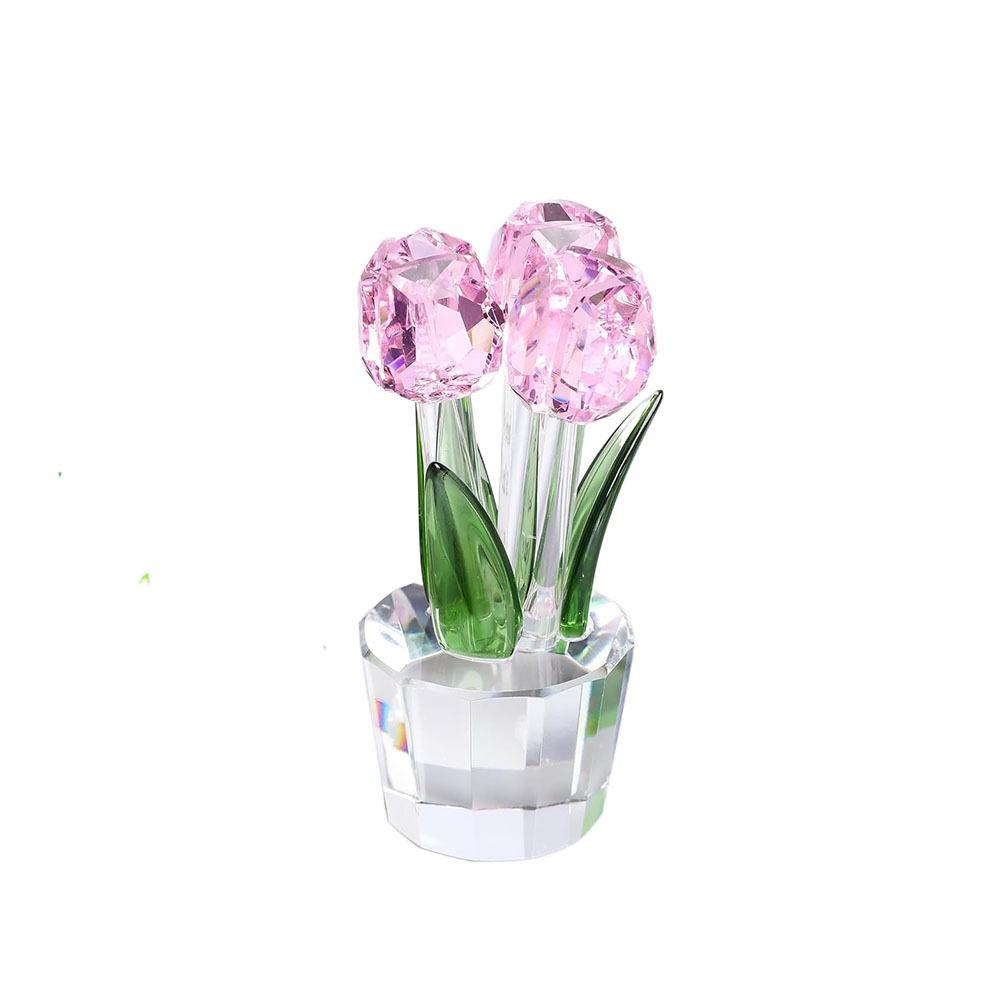 Handmade Crystal Tulip Sculpture Colorful Tulip Bouquet Statue Home Table Decor