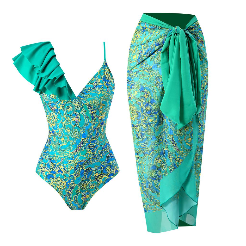 Latest Sexy One-piece Swimsuit for Women Bikini Leopard Print Ruffle Swimsuit Chiffon Long Skirt