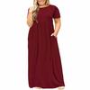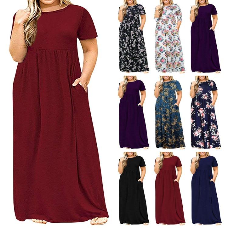 Женская мода плюс размер свободное повседневное платье с коротким рукавом и круглым вырезом