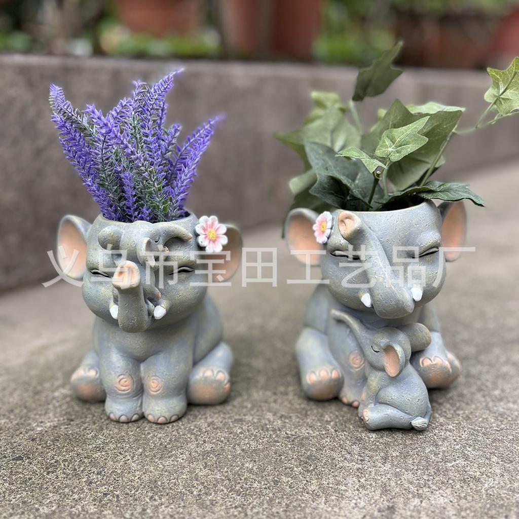 1 piece of creative cute elephant flower pot shape, resin statue ornament, balcony garden and courtyard decoration