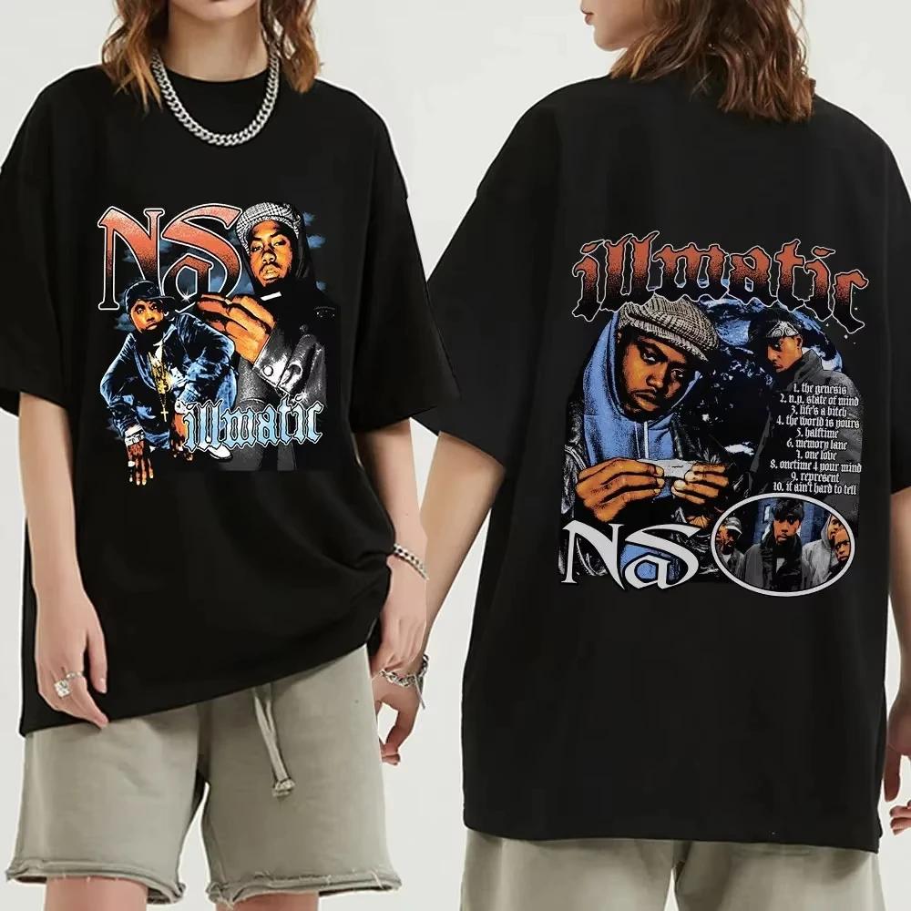 Футболка с рисунком рэпера Nas Illmatic, мужская модная винтажная футболка, повседневные футболки с коротким рукавом из 100% хлопка, уличная одежда в стиле хип-хоп