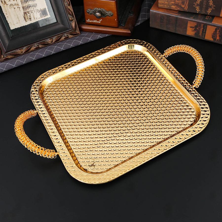 Европейский квадратный поднос-украшение Металлический квадратный поднос с точечной чеканкой Фруктовая тарелка Тарелка для выпечки торта Десертная тарелка Кабаре принадлежности
