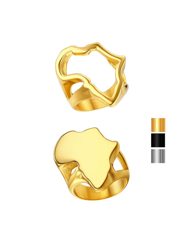 Большие кольца в виде карты Африки из нержавеющей стали для мужчин и женщин, сплошные / с вырезами, печатки с картой африканских стран, унисекс, ювелирный подарок