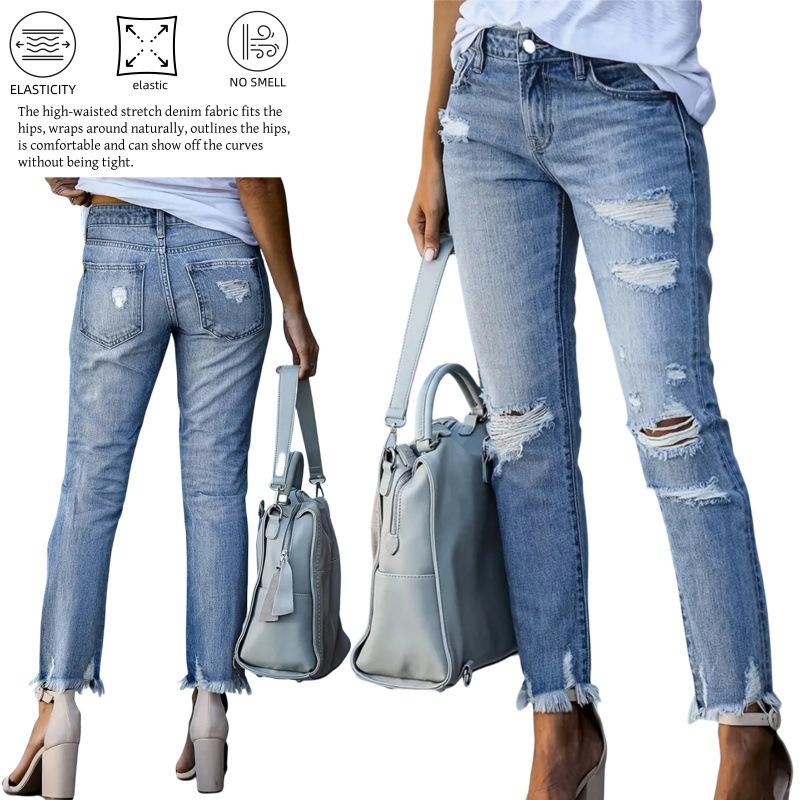 Новые джинсы с потертостями и бахромой 2026 года для женщин, облегающие джинсы с высокой талией и высокой эластичностью, рваные женские брюки с высокой эластичностью