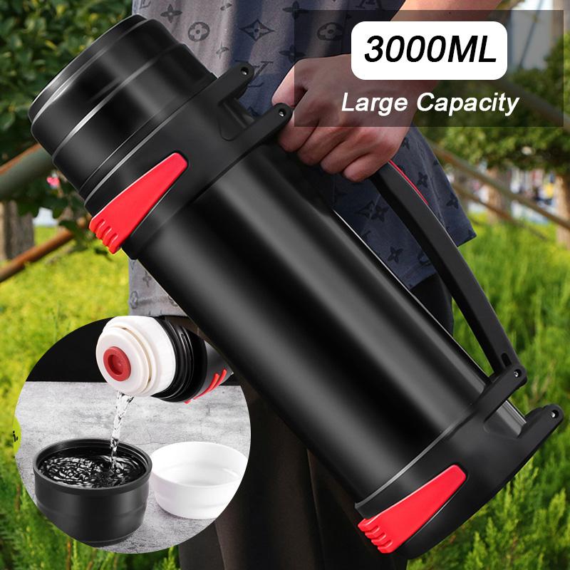 3L Roomy Thermos Bottle Stainless Steel Keep Warm Kettle Lightweight Water Bottle for Travel Camping Outdoor Activity Drinkware