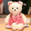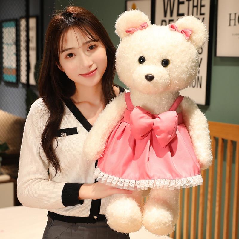 Kawaii Plush Curly Hair Teddy Bear Toys Charming Bear with Bow Suspender Dress Pillow Stuffed Soft Dolls Girls Gifts