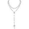 652F Catholic Rosary Crystal Beads Necklace with Miracles Medals Crosses Crucifix First Communion Rosary for Women Men